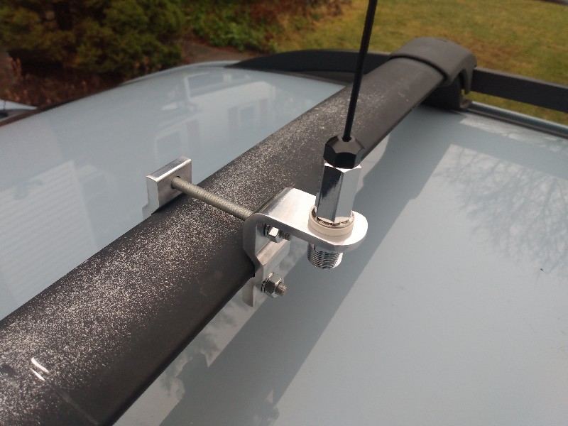 I have a solution: clamp to a roof rack crossbar. You could use a heavy-duty mirror mount for a larger antenna, but you could use a much smaller Workman BVAM-1 aluminum mount for 2m or dual-band antenna or even a small HF vertical like the Super Antenna MP1. Just add longer bolts (plus wing nuts if you want to be able to attach/detach without tools).